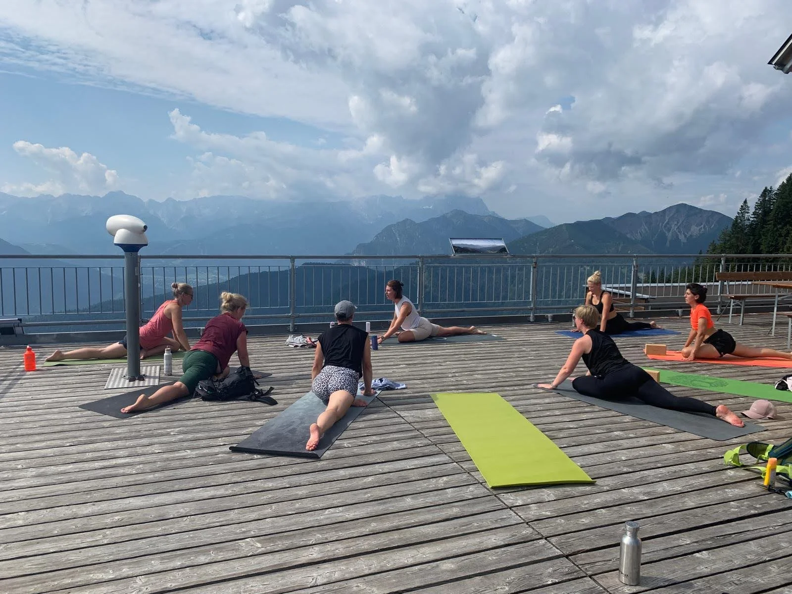 Früh morgens um 7:00 Uhr starten wir gemeinsam an der Talstation der Laber Bergbahn in Oberammergau, um die Natur in vollen Zügen genießen zu können. In gut zwei Stunden wandern wir zur Berggaststätte "Die Laberei" und üben dort auf der wunderschönen Dachterrasse mit Rundumblick auf die Ammergauer Alpen eine Stunde Yoga zusammen.
